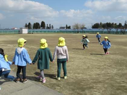 ピーターパン広場で遊んだよ!(つばめ組) 公開日 2021/03/15 更新日 2021/03/15 1日の生活 3月15日(月) 今日はピーターパン広場でたくさんあそびました。鬼ごっこや仮面ライダーごっこ、お家ごっこをして遊んだり「はないちもんめ」や「だるまさんがころんだ」をして遊びました。友達と一緒に外でたっぷり体を動かして遊ぶことを楽しみました。