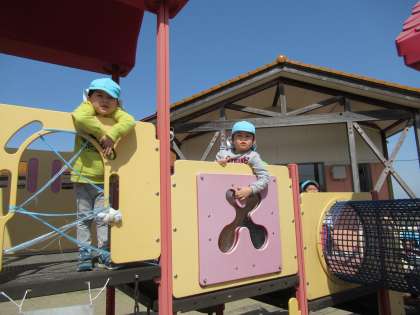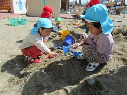 なかよし広場で(ほし組) 公開日 2021/03/18 更新日 2021/03/18 1日の生活 3月18日(木) 今日はなかよし広場で、たんぽぽ組の友達と大きな山をつくりました。トンネルづくりでは、たんぽぽ組の友達がつくっている様子を見て真似しようとしたり、一緒に車を走らせたりしていました。ほし組ももうすぐたんぽぽ組です。かっこいいお兄さん、お姉さんになれるといいですね。