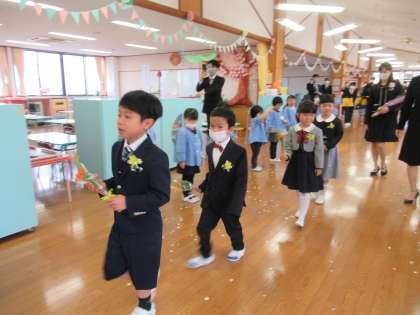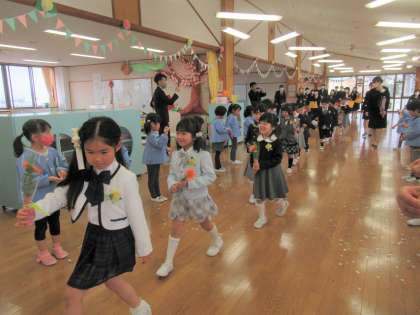 ほし組さんとたんぽぽ組さんがお見送りをしてくれました。とっても嬉しそうに歩く子供たちでした。