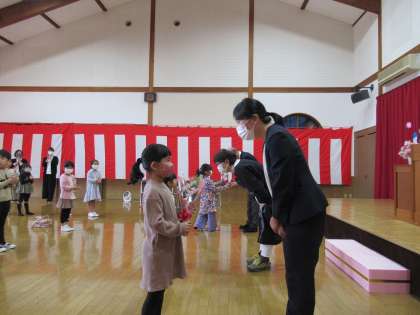 離任式がありました 公開日 2021/03/30 更新日 2021/03/30 1日の生活 3月29日(月) 今日は離任式がありました。異動される先生方に「ありがとうございました」「また遊びに来てください」「だいすきだよ」と最後に一人一人お別れの挨拶をしました。大好きな先生たちとのお別れは少し寂しいけれど、またいつか会えることを願っています。幼稚園にも遊びに来てくださいね。待っています。