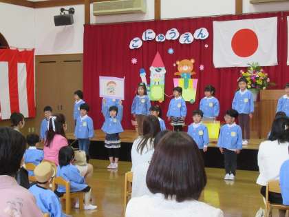今日は入園式がありました。今年度はほし組に13名が入園し、初めての幼稚園にドキドキしている子もいましたが、担任の先生に名前を呼ばれると恥ずかしそうにしながらも返事をしたり、手を挙げたりできました。歓迎会では、つばめ組がお祝いの言葉や歌を元気に歌いました。月曜日、みんなが来てくれることを待っています。