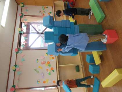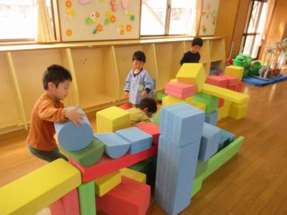 カラー積み木で毎日色々なものをつくっている子供たち。今日はとっても大きなピタゴラスイッチやキラメイジャーをつくって遊んでいましたよ。キラメイジャーが戦いによって何度か倒されていましたが、何度も作り直して復活していました。さすが、キラメイジャーは強いですね!明日は何が出来上がるのか楽しみです。