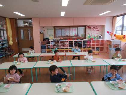 そして、楽しみにしていた給食です。1時間前から「お腹すいた」と言っていた子供たちなので、とても嬉しそうに食べていましたよ。