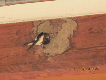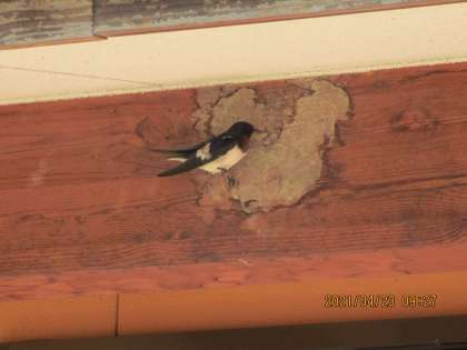 毎年、幼稚園に巣を作っているツバメ。今年も同じ場所に巣を作ろうとやって来ました。まだほんの少ししか形になっていませんが、一生懸命な様子が伝わってきます。また、かわいい赤ちゃんが顔を覗かせてくれるのが楽しみです。
