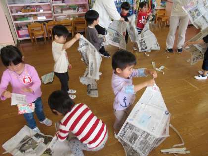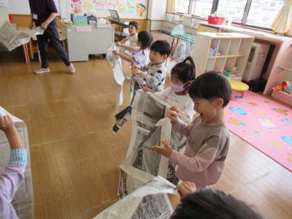 新聞紙で遊びました(ほし組)