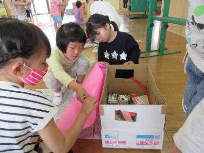 今日のつばめの様子 公開日 2021/05/14 更新日 2021/05/14 1日の生活 5月14日(金) 今日は色々な素材を使って自分のイメージした物をつくって遊びました。ウサギのお家、マリオカート、ネイルをつくって楽しみました。ウサギのお家づくりでは友達と「ここにカーテンあったらいいよね」「ここに窓つくろう」などと、友達と思いを出しながら遊びを進めていました。自分でつくった物で遊ぶ楽しさを感じている子供たちです。