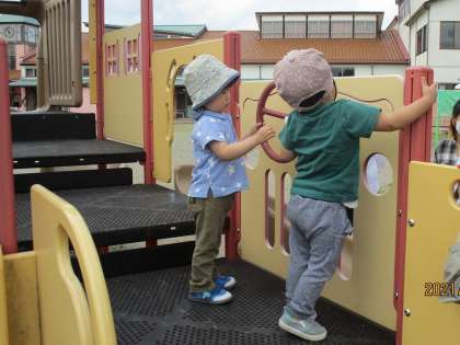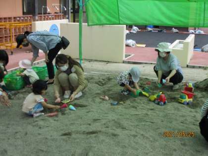 親子サークル 公開日 2021/05/25 更新日 2021/05/25 1日の生活 5月25日(火) 今日の親子サークルは、お部屋の中で好きな遊びをしたり、4・5月生まれの誕生会をしたりしました。誕生会の後は、園庭に出て砂遊びや滑り台をして遊びました。 来週は、講師の先生をお迎えしてリトミックを予定しています。10時30分から始まるので、遊びに来てくださいね。