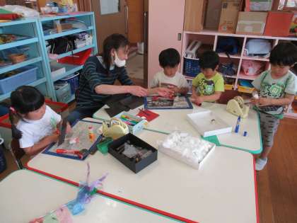 室内ではマリオお化け屋敷で遊んだり、お寿司屋さんのお寿司のメニューを増やしたりと自分の好きな遊びを楽しみました。