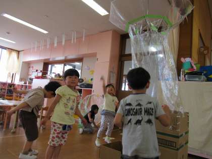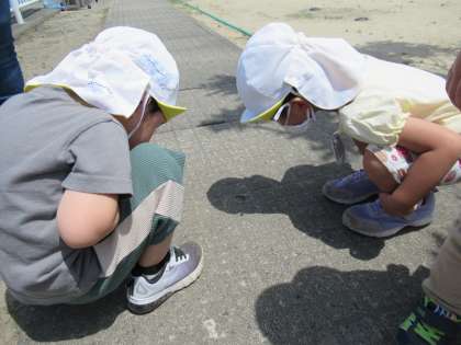 今日のほし組の様子 公開日 2021/06/04 更新日 2021/06/04 1日の生活 6月3日(木) 今日はピーターパン広場で遊びました。朝の会でアリの絵本を見たことを思い出して「先生、アリいるよ」「ここに穴ある」「アリさんトンネルだ!」と嬉しそうに話していました。よく見るとダンゴムシを運ぼうとしたり、長い物を協力して運ぼうとしたりするアリもいましたよ。 午後からはアリさんトンネルで「ここはお風呂」「ここはご飯の部屋」「寝るところはここ」と言って遊んだり、玉入れをしたりしました。