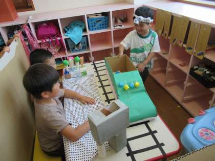 今日はつばめ組さんのマリオワールドに遊びに行きました。色々なコーナーがあり、大喜びで遊んでいました。その後にたんぽぽ組のマリオお化け屋敷とはま寿司にも遊びに来てくれ、とっても嬉しそうな子供たち。はま寿司は大盛況で行列になり、店長もとっても嬉しそうでした。お化け屋敷も「キャー」と驚いてくれるつばめ組さんに、お化けの子供たちも張り切って驚かせていましたよ。終わってから「明日もつばめさんに行きたいな」「明日も来てくれるかな」と何度もつぶやいていた子供たちでした。