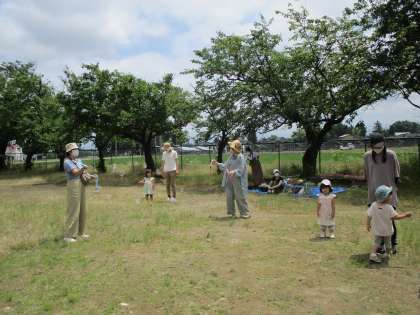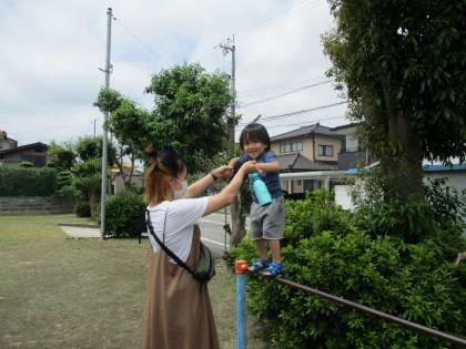 親子サークル 公開日 2021/06/15 更新日 2021/06/15 1日の生活 6月15日(火) 今日の親子サークルは、帽子を被って「行ってきまーす」と元気に幼稚園を出発し、幼稚園の近くのみどり公園まで散歩に行って来ました。公園では、ブランコや滑り台、鉄棒をしたり、シャボン玉をして遊んだりしました。ちょっと暑い日でしたが、頑張って一人で歩いて帰って来れましたね。