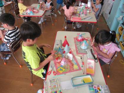 今日つばめ組の様子 公開日 2021/06/23 更新日 2021/06/23 1日の生活 6月23日(水) 今日は園庭で遊んだ後、七夕の織姫と彦星をつくりました。自分で顔の形を描いて切ったり、折り紙をのりでつけたりしました。星の形を描いて切るのが難しいようでしたが、最後まで頑張って取り組んだつばめ組です。