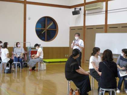 富山県家庭教育アドバイザー・富山県親学び推進スーパーリーダーの水上雅博さんを迎え、親学び講座を行いました。年少・年中・年長の保護者20名が参加し、自己紹介のあと「子どものしつけ」というテーマで4つのグループに分かれて話し合いました。和気あいあいとした雰囲気で、自分の悩みを話したり他の家庭ではどのようにしているのかを聞いたりして、とても有意義な時間になったようです。参加していただいた保護者のみなさん、ありがとうございました。