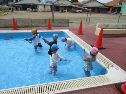 今日は朝早くからプールに入りました。水がまだ少し冷たく、お散歩や水鉄砲をしながら慣らしていきました。段々と気持ちよくなり、喜んで入っていました。