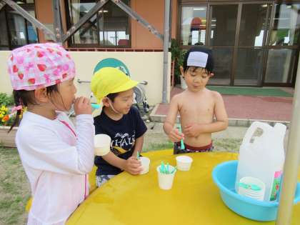 今日はパタパタプール中でワニなって歩いたり、大きなシャボン玉をつくって友達と割ったりして遊びました。先生や友達と一緒に遊ぶことを楽しんでいます。
