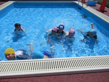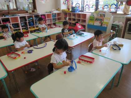今日はプール遊びや七夕飾り製作をしました。プールではワニ歩き競争や水鉄砲を楽しみました。七夕製作では紙テープを使って天の川をつくりました。