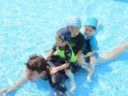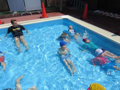 英語教室でプール遊びをしました。(たんぽぽ・つばめ組) 公開日 2021/07/15 更新日 2021/07/15 1日の生活 7月15日(木) 今日の英語教室はダン先生と一緒にプール遊びをしました。プールの指導を受けながら英語も学ぶことができ、いつも以上に嬉しそうな子供たちでした。