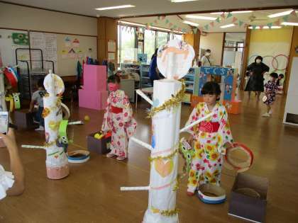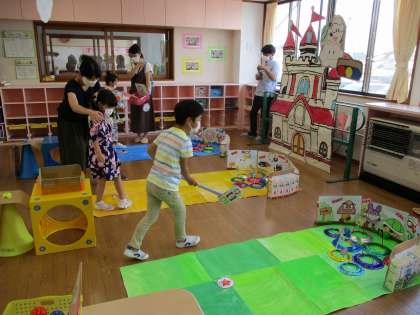 夏祭りがありました 公開日 2021/07/31 更新日 2021/07/31 1日の生活 7月31日(土) 子供たちが楽しみにしていた夏祭り会。 時間毎に年齢を分けて、密にならないように気を付けながらいろいろなコーナーを回りました。
