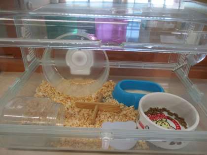 マロンちゃん、元気です! 公開日 2021/09/06 更新日 2021/09/06 1日の生活 9月6日(月) ハムスターのマロンちゃんは、子供たちがいる時間のほとんどは眠っていますが、時々餌を食べたり滑車で回っているところを見せてくれます。 今日は、お部屋の中をきれいに掃除しました。掃除中は水色のボールの中に入りお散歩タイム。とても上手に動き回り、部屋から脱走して玄関のほうまで行ってしまうこともあります・・・きれいになった部屋に戻ると、早速エサを頬袋の中に詰め込んでいました。