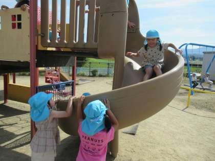 今日は久しぶりに園庭で遊びました。新しくなったブランコを嬉しそうに乗ったり、鬼滅ごっこをしたりしていました。