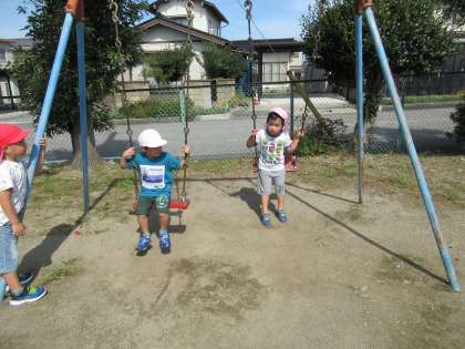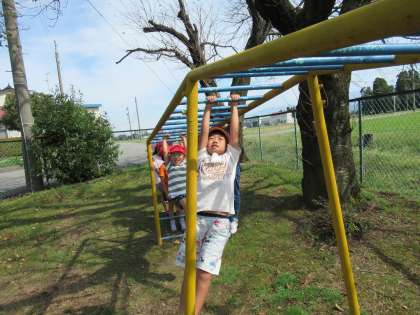 公園では、ブランコに乗ったり、雲梯に挑戦したりしました。