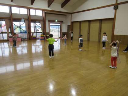 雨が降っていたので、プレイルームでは縄跳びに取り組みました。夏休みからの練習の成果が出ていて上手に跳んでいましたよ。