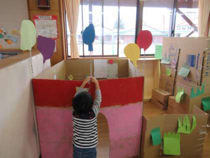 ポケモンパラダイスの様子(たんぽぽ組) 公開日 2021/10/13 更新日 2021/10/13 1日の生活 10月13日(水) 今日はポケモンパラダイスにトンネルと風船をつけたいという声が聞かれ、暗いトンネルや風船をつくってポケモンハウスや迷路の中に取り付けました。色々な色の風船ができて、とても楽しそうなポケモンパラダイスになってきましたよ。