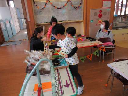 今日のつばめ組の様子 公開日 2021/10/28 更新日 2021/10/28 1日の生活 10月28日(木) 今日は自由保育参観の最終日でした。 ハロウィンの遊び場や英語教室を見てもらいました。 ハロウィンの遊び場では、自分達でつくった遊び場を、おうちの方に遊んでもらい嬉しそうでした。