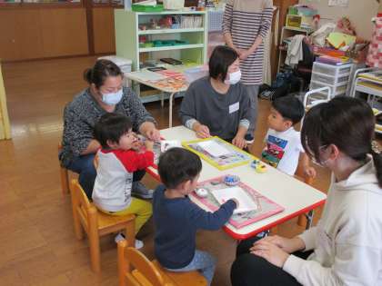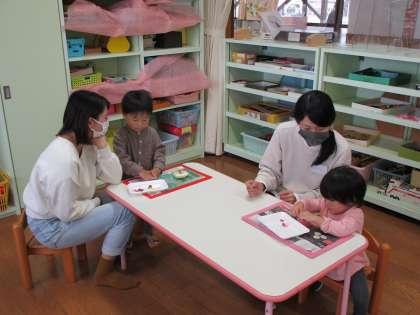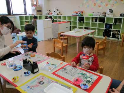 親子サークル 公開日 2021/11/09 更新日 2021/11/09 1日の生活 11月9日(火) 今日の親子サークルは、木の実を使った製作をしました。紙粘土にドングリやビーズを飾ってカップケーキをつくったり、透明のカップでドングリが転がるおもちゃをつくったりしました。 来週は、晴れていたら園庭で遊びます。雨天の場合は新聞遊びをします。 11月30日(火)は、ゆきみだいふくさんの音楽遊びに変更になりました。 お待ちしています!!