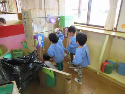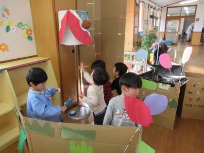 みんなでたんぽぽ組のポケモンパラダイスに遊びに行きました。ポケモン探しをしたり、玉入れをしたりして遊びました。ポケモンが好きな友達に名前を聞いて探したり、玉入れでは全部の玉をいれようと頑張っている姿も見られました。たくさん遊べて嬉しそうな子供たちでした。