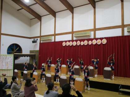 プログラム1番はリズムで法被を着て和太鼓のリズムや踊りをしました。自分だけの法被を着て踊る姿はとてもかっこよかったです。