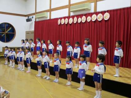 わくわく発表会がありました。(つばめ組) 公開日 2021/11/20 更新日 2021/11/20 1日の生活 11月20日(土) 第3部はつばめ組。 鼓隊や歌は友達と心を一つにして演奏したり、歌を歌うことができました。劇は大きな声で自信をもって台詞を言ったり、大道具を動かしたりしながら、友達と同じ目的に向かって進めることができました。おうちの方に褒めてもらい嬉しそうなつばめ組さんでした。温かい拍手をありがとうございました。