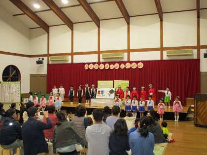 わくわく発表会がありました。(つばめ組) 公開日 2021/11/20 更新日 2021/11/20 1日の生活 11月20日(土) 第3部はつばめ組。 鼓隊や歌は友達と心を一つにして演奏したり、歌を歌うことができました。劇は大きな声で自信をもって台詞を言ったり、大道具を動かしたりしながら、友達と同じ目的に向かって進めることができました。おうちの方に褒めてもらい嬉しそうなつばめ組さんでした。温かい拍手をありがとうございました。