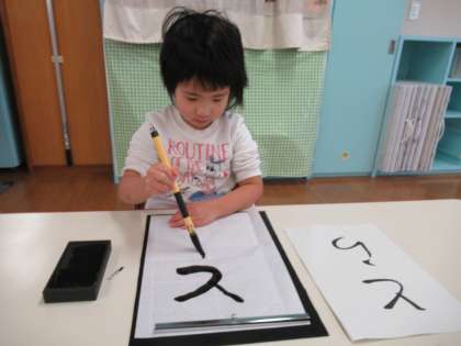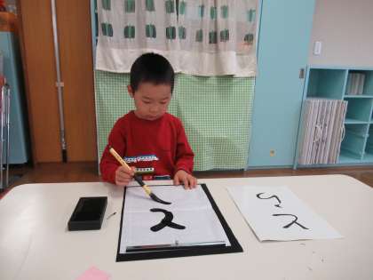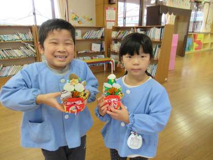 書初めに挑戦しました。今年の干支の「とら」を筆と墨を使って書きました。2文字ですが習字の紙にバランスを考えながら書くのが少し難しいようでした。また、年末に牛乳パックとトイレットペーパーの芯で門松もつくりました。2022年が子供たちにとって楽しい一年になると嬉しいです。