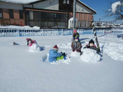 今日のたんぽぽ組の様子 公開日 2022/02/07 更新日 2022/02/07 1日の生活 2月7日(月) 今日はお店屋さんごっこの続きをし、看板やお皿、トッピングの具材をつくったり、お店の場所を考えたりしました。少しずつお店屋さんができてきて嬉しそうな子供たちです。 ピーターパン広場ではそり滑りや雪だるまづくりをして楽しみました。大きな雪だるまがたくさんできてとても喜んでいましたよ。
