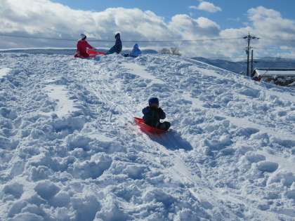 今日のほし組の様子 公開日 2022/02/07 更新日 2022/02/07 1日の生活 2月7日(月) 今日は久し振りに雪遊びをして遊びました。たくさん積もったので、雪だるまをつくったり、雪合戦をしたり、そり滑りをして遊びました。「かまくらをつくりたい」と、今日はかまくらづくりにも挑戦しました。雪を集めてトントンとかためて「最高の屋根にしよう」「バナナの電気を付けたい」と話しながらつくりました。