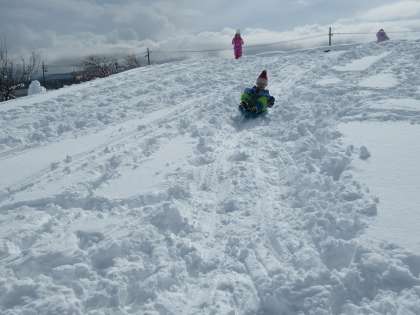 製作の後はピーターパン広場に行き、雪遊びをしました。そり滑りや、雪玉転がし、お尻滑りなどをしてたくさん遊びました。