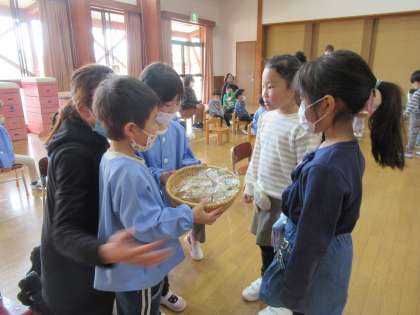 最後につばめ組さんへ感謝の気持ちを込めてプレゼントを渡しました。ほし組は写真立て、たんぽぽ組はペン立てをプレゼントしました。「わぁー嬉しい!」「ありがとう」と言われ、とても嬉しそうな子供たちでした。