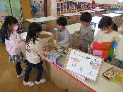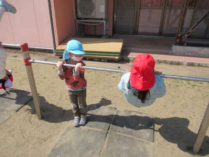 今日のたんぽぽ組の様子 公開日 2022/03/11 更新日 2022/03/11 1日の生活 3月11日(金) 今日は修了式の合同練習に参加した後、園庭で遊びました。六角ジムでは以前は高いところに登るのを怖がっていた子も、今日は友達と一緒に挑戦し、自分の記録を更新してとても嬉しそうでした。鉄棒ではつばめ組さんに逆上がりのコツを教えてもらい、マネをしてやってみていました。 午後からはお店屋さんごっこや製作遊び、カラー積み木でたくさん遊びました。