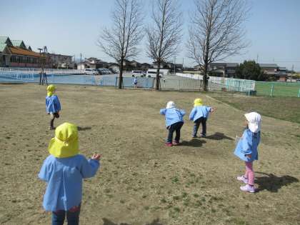 今日はピーターパン広場へ行って、築山でかけっこをしたり、今まで遊んできた氷鬼やだるまさん転んだをしたりして遊びました。広いピーターパン広場でも友達を追いかけて、遠くまで元気に走っているほし組のみんな。ほし組での生活も残り5日となりました。最後まで楽しく元気に過ごせたらと思います。