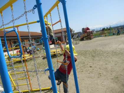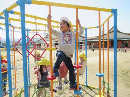 今日は天気がよかったので園庭に出て遊びました。六角ジムで遊んでいる子の中には「たんぽぽさんになったからここまでいけるようになった」と高いところまで挑戦している子もいました。