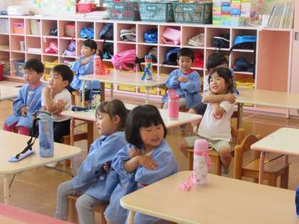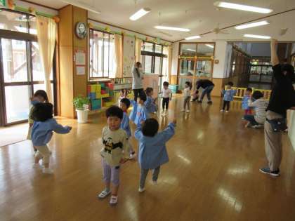 クラス活動では、手遊びや歌を歌ったり、オープンスペースに出てみんなで踊りを踊りました。昨日よりも笑顔でいる時間が増えてきましたよ。