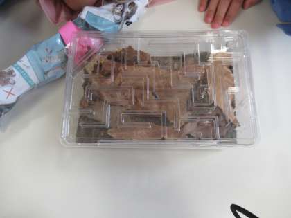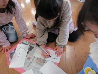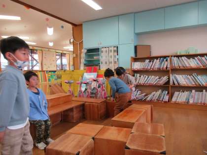 園庭で見つけたダンゴムシを飼育ケースの蓋の迷路で歩かせた経験から、大型積み木でダンゴムシ迷路をつくって、みんなで遊ぶことになりました。「どこスタートにする」「ここ行き止まりにしよう」と友達に思いを伝えながら遊びを進めていました。