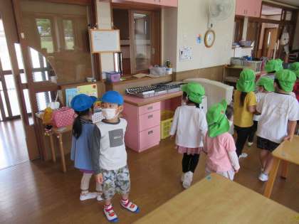 今日は4歳児の交流保育がありました。自己紹介をして名前と好きな食べ物を言いました。恥ずかしそうにしながらも、自分なりに言葉で伝えようとする姿が見られました。自己紹介の後は同じグループの友達と保育所に探検に行ったり、幼稚園を案内してあげたりしました。最後は大好きな「エビカニクス」を一緒に踊り、短い時間でしたが保育所の友達と楽しい時間を共有できて嬉しそうな子供たちでした。