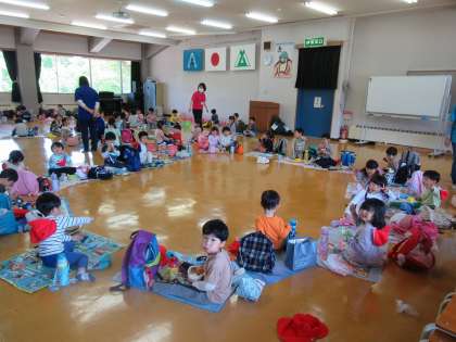 帰りのバスの中では疲れて眠っている子もいましたが、元気いっぱいで歌を歌ったり、先生や友達とたくさん話をしたりしながら帰ってきました。園に着いてからは手遊びをしたり、絵本を見たりしてゆっくり過ごしました。