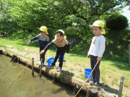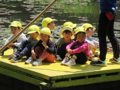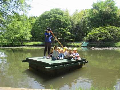 今日は呉羽青少年自然の家に行ってきました。最初はイカダ乗りに挑戦しました。最初はドキドキしていた子供たちですが、とある魚がいると聞いて池の中をそーっと覗いてみました。とある魚の正体は・・・大きな鯉!発見すると「鯉だ!」と嬉しそうな子供たち。他にもいないかよく見て「オタマジャクシもいた」「カエルもいるんじゃない?」と大好きな生き物に興味をもち、初めてのイカダ乗りを満喫しました。イカダ乗りの次はザリガニ釣りにも挑戦しました。(その2へ続く)