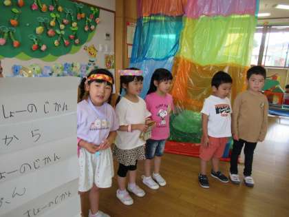 今日はつばめ組の水族館にたんぽぽ組さんを招待しました。