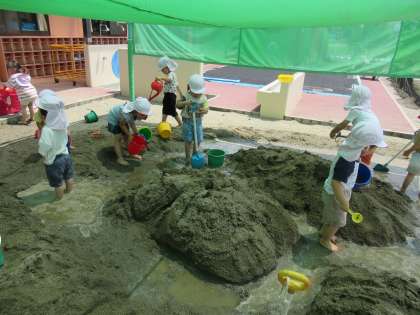 砂場で泥んこ遊び、楽しいな!(ほし組)