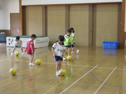 今日のつばめ組の様子 公開日 2022/06/22 更新日 2022/06/22 1日の生活 6月22日(水) 今日はサッカー教室がありました。ボールに親しむためのボール遊びから始まり、シュートをしたり、ゲームをしたりしました。優しいコーチにいっぱい誉めてもらいニコニコの子供たちでした。
