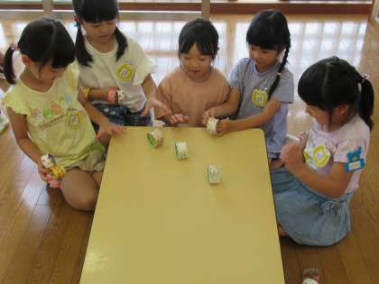 カラーガード楽しいよ(つばめ組) 公開日 2022/09/07 更新日 2022/09/07 1日の生活 9月6日(火) 今日はカラーガードをしました。 運動会に向けて頑張っているつばめ組です。 午後から9月の月刊誌の付録をつくって遊びました。